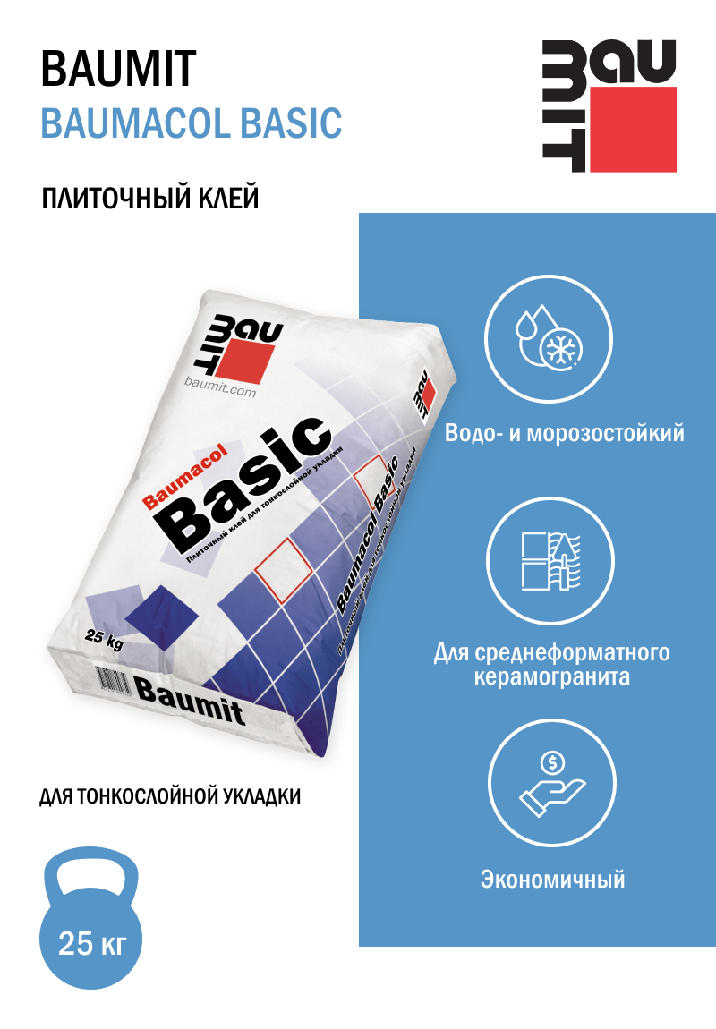 Плиточный клей Baumit Baumacol Basic (мешок 25кг)